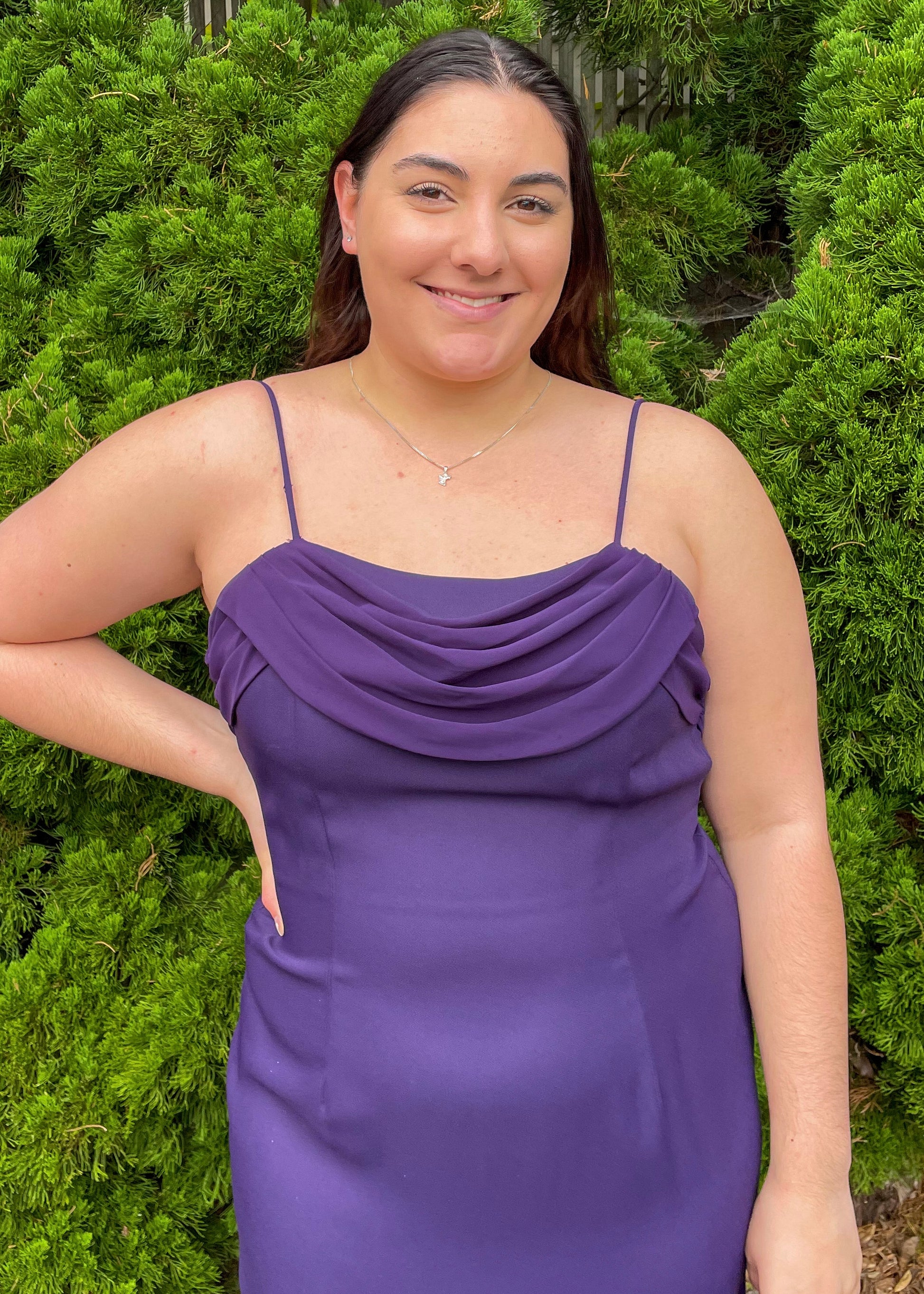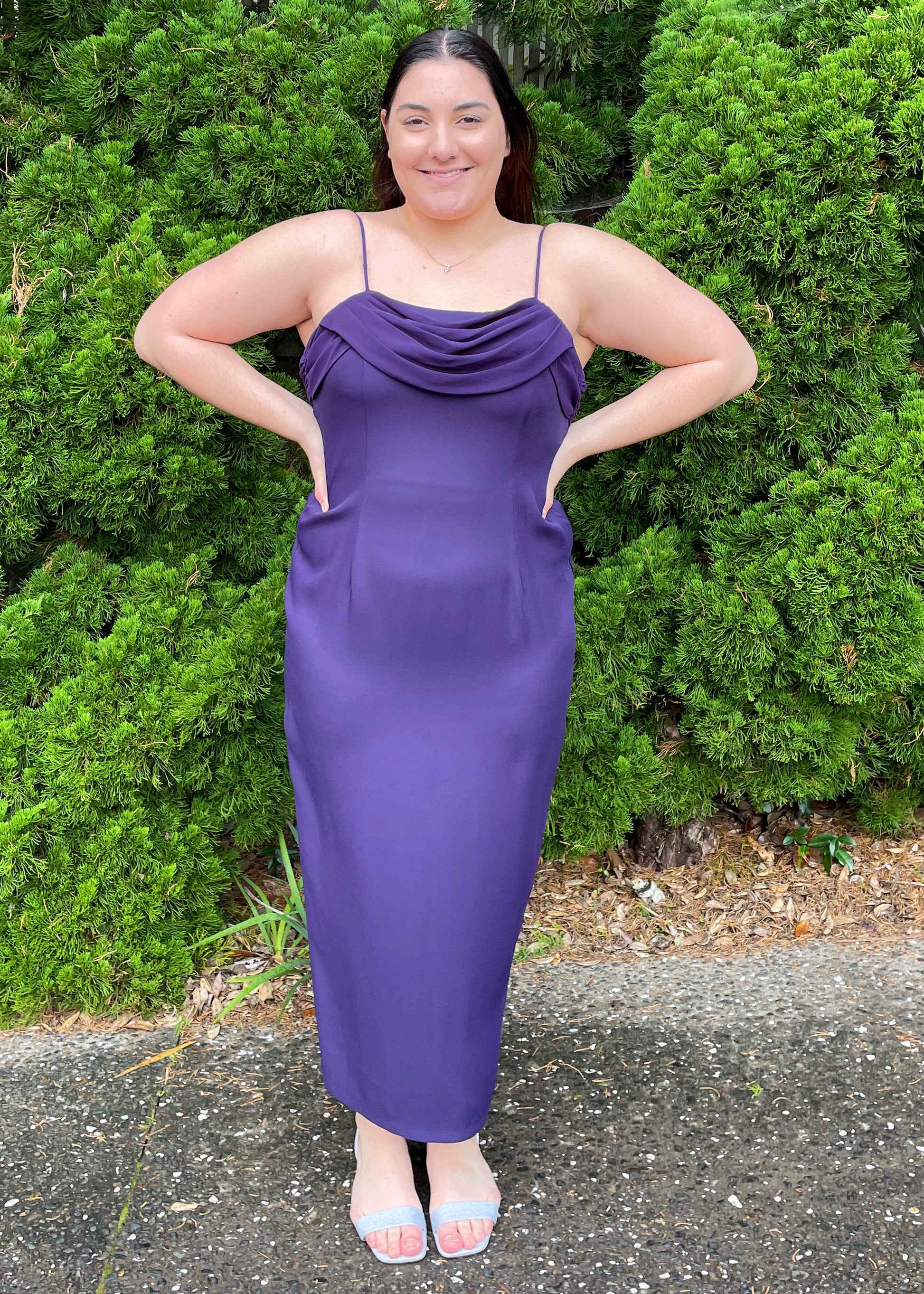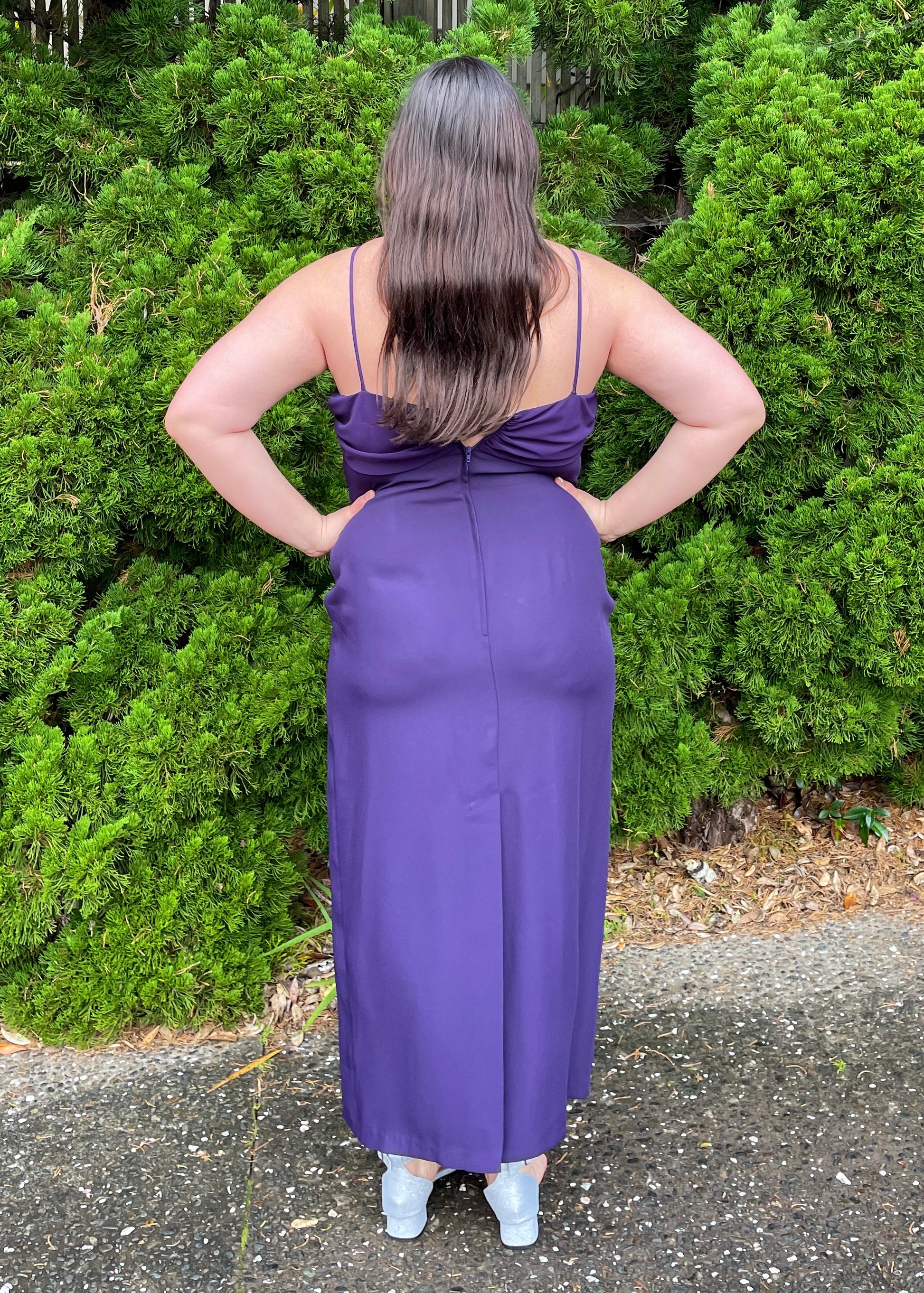 Flaunt your figure in style and grace with this stunning purple ball gown that complements your curves effortlessly.