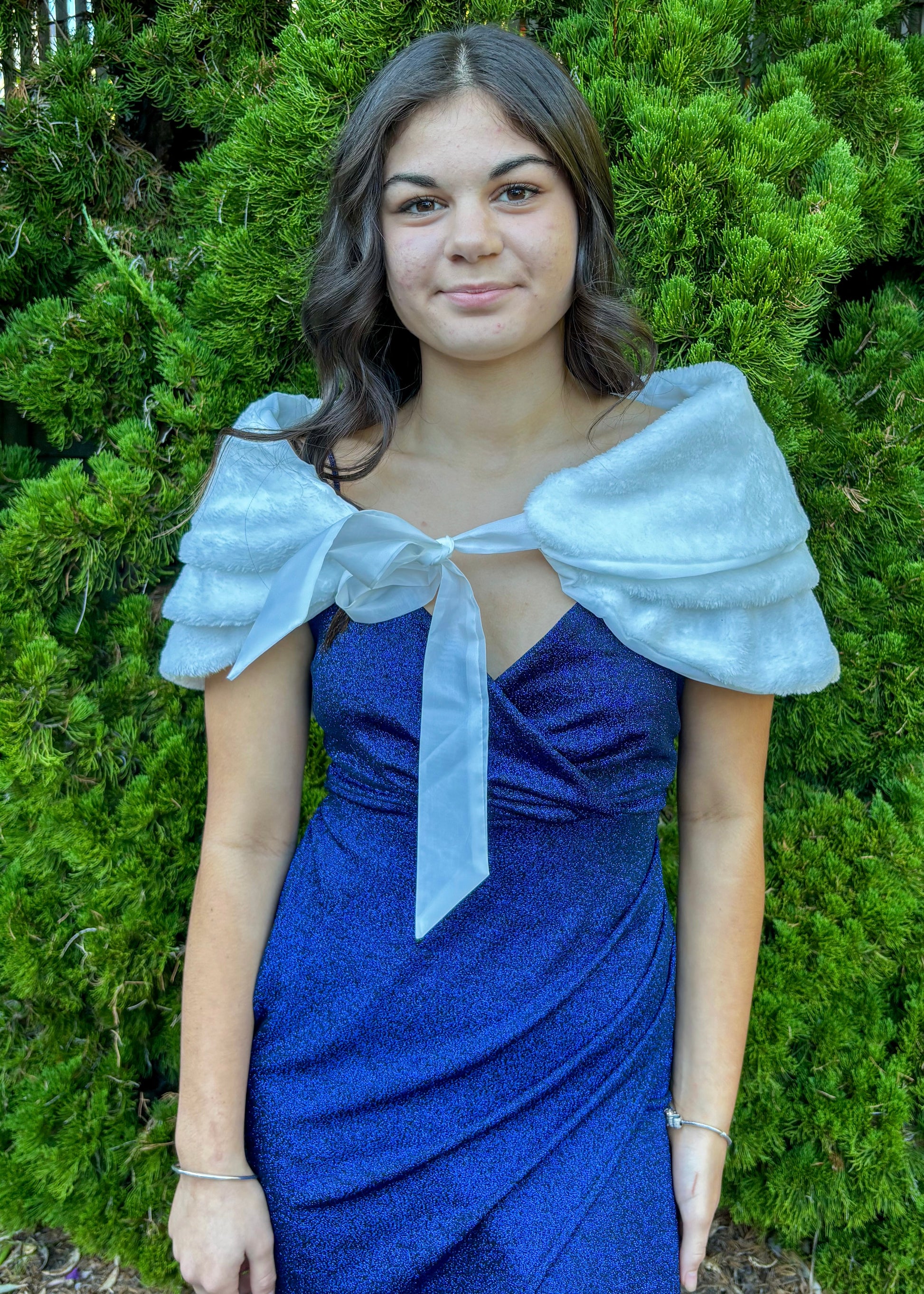Elevate your look with our plush faux fur wrap – a chic and luxurious accessory for any formal event.