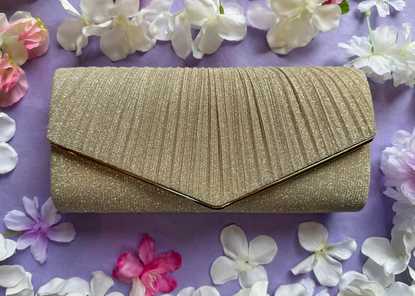 Effortlessly chic and endlessly versatile, our gold clutch is the perfect accessory to your dress.