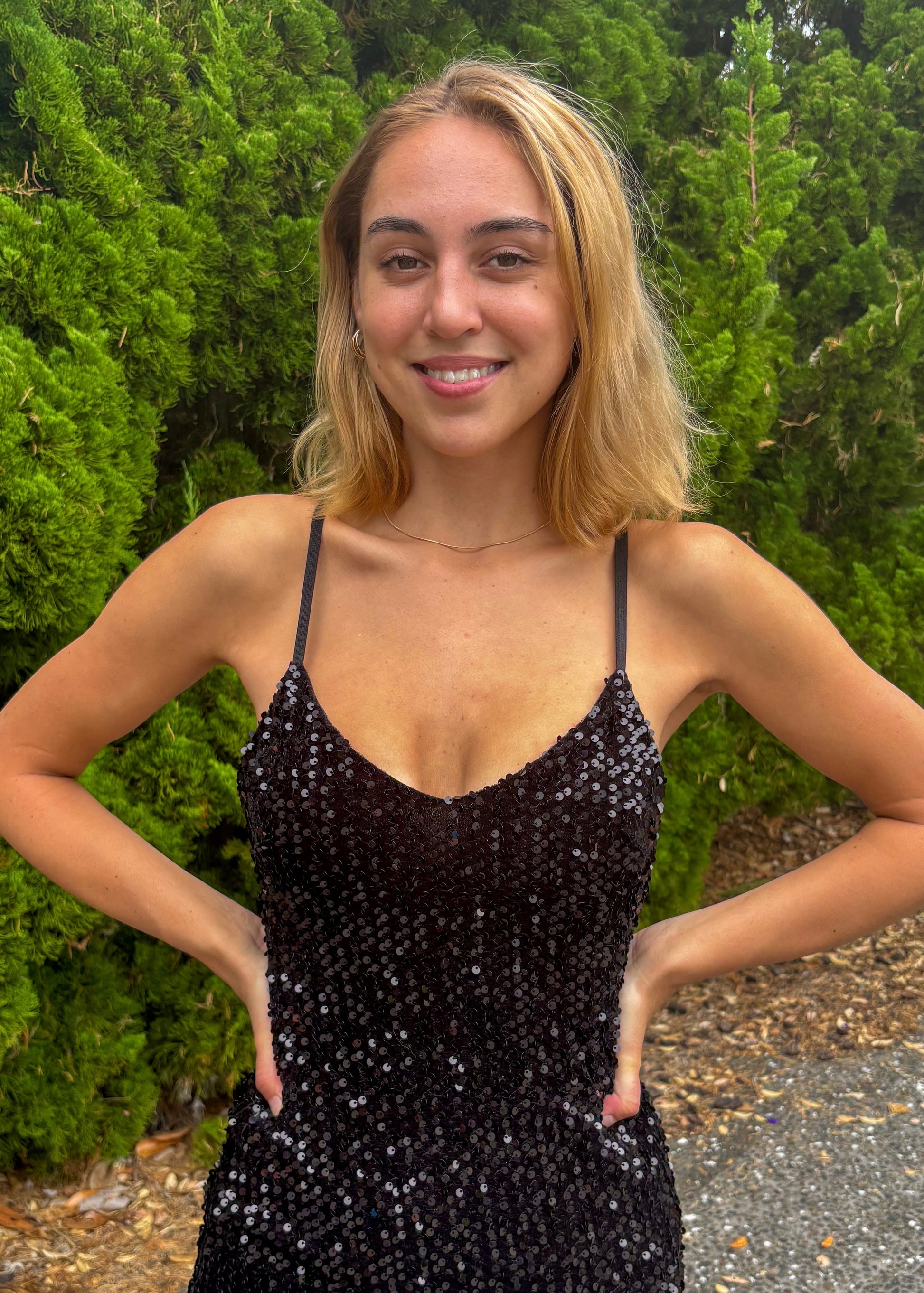 Black Tie Glamour: Make a statement in classic black with this sophisticated full-length sequin dress. The timeless colour combined with the shimmering sequins creates a look that's effortlessly chic and perfect for any formal event.