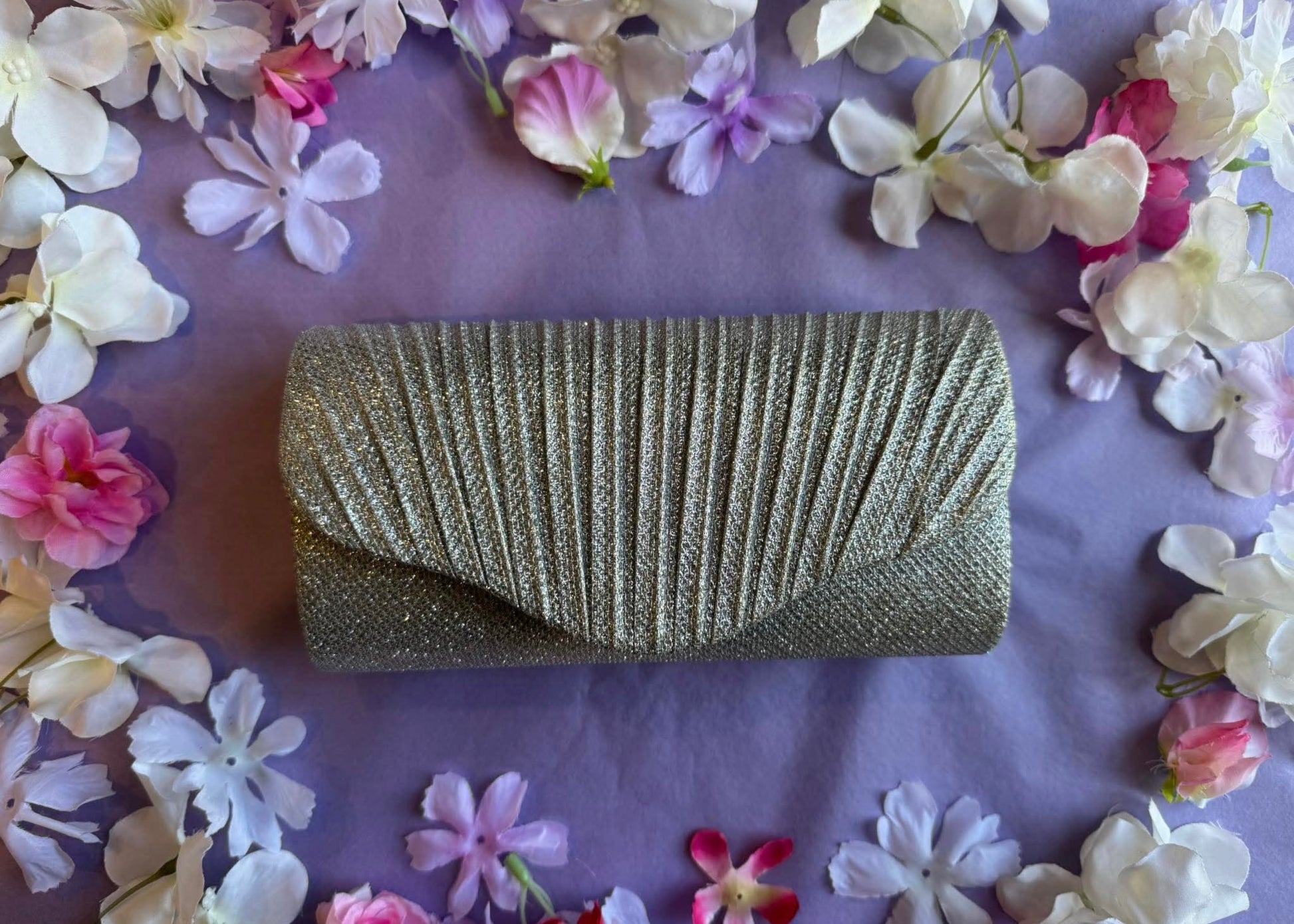 Effortlessly chic and endlessly versatile, our silver clutch is the perfect accessory to your dress.